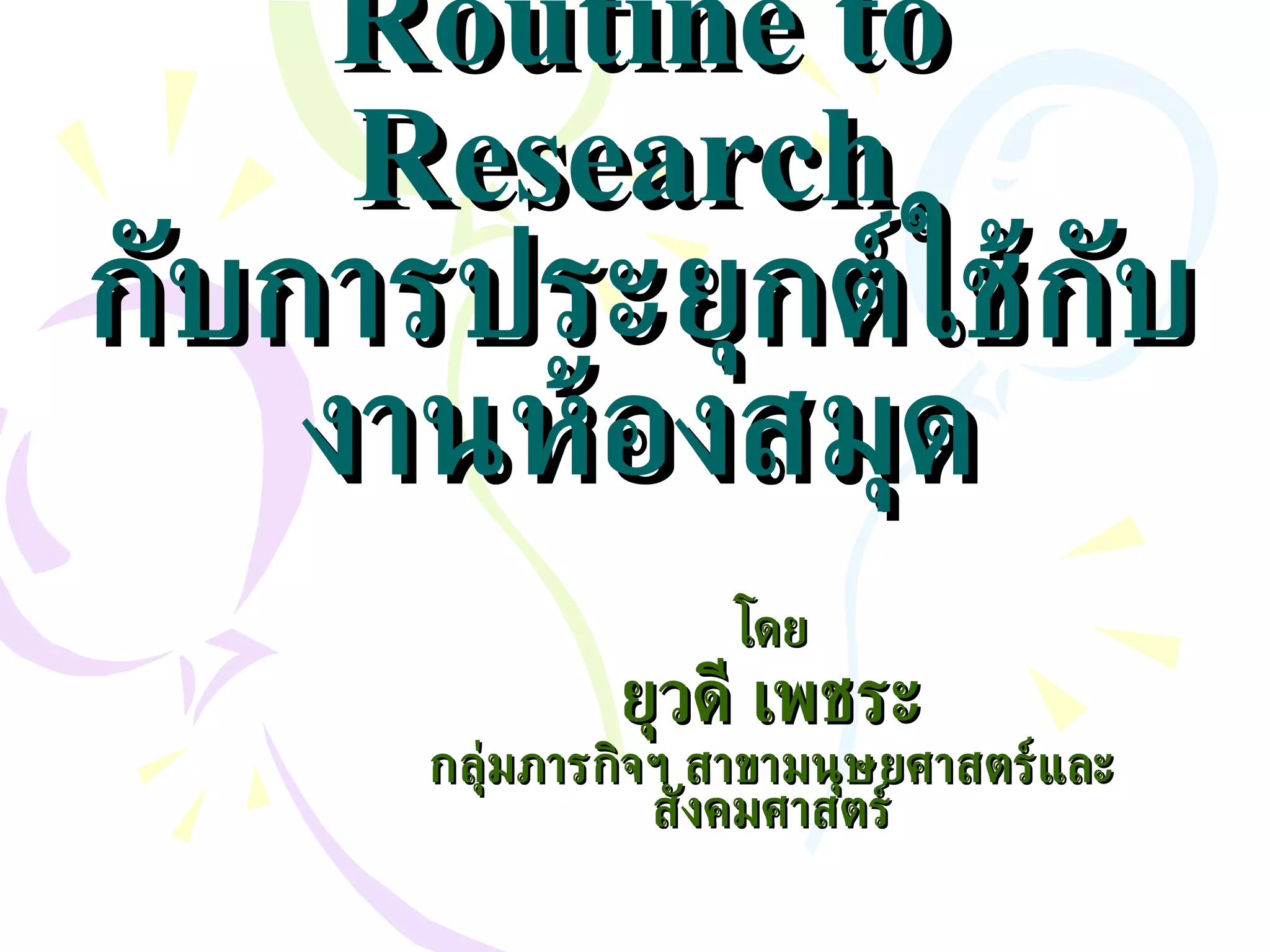 Routine to Research กับการประยุกต์ใช้กับงานห้องสมุด โดย ยุวดี เพชระ กลุ่มภารกิจฯ สาขามนุษยศาสตร์และสังคมศาสตร์ - 2.