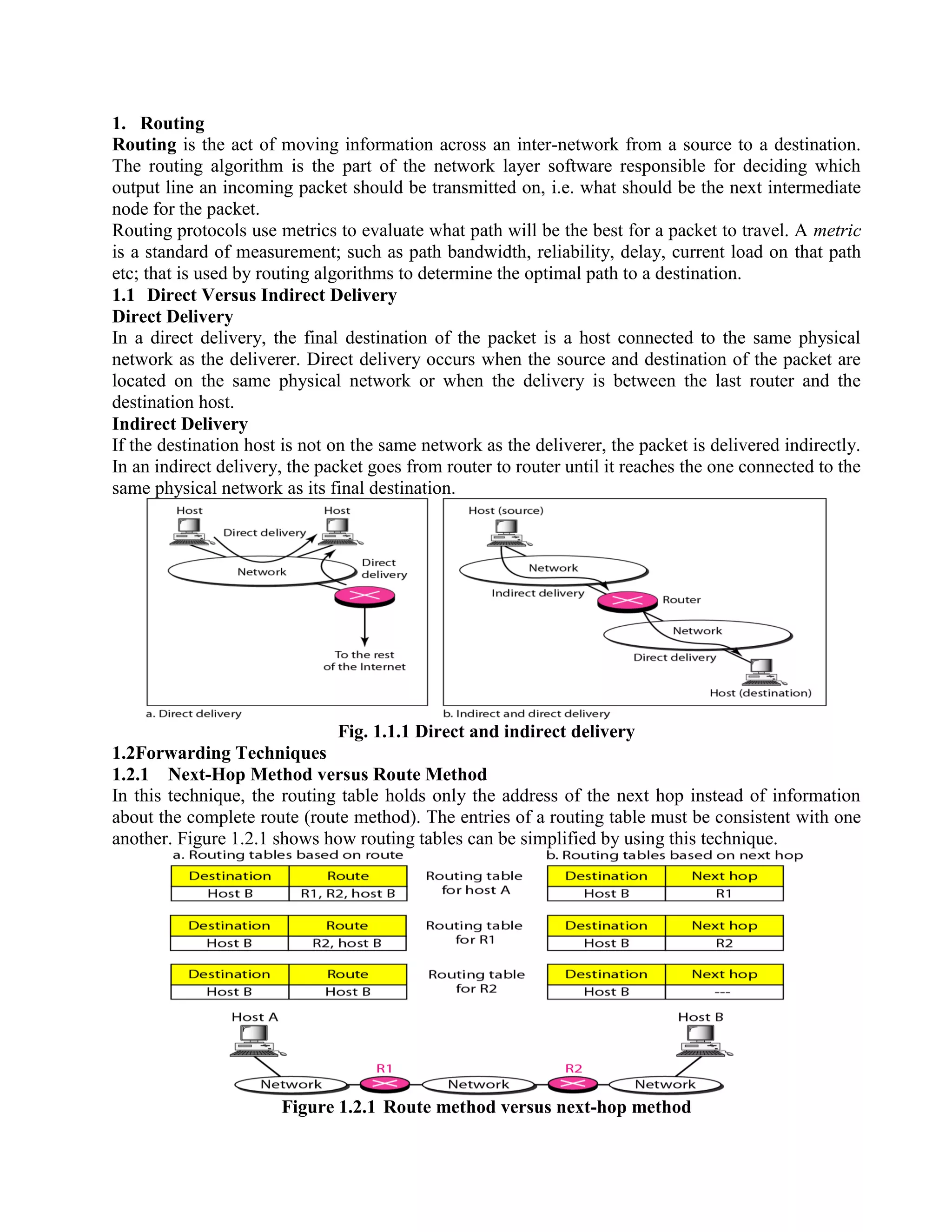 Routing is the process of moving information across an internetwork from a source to a destination. There are two types of routing: direct delivery where the source and destination are on the same network, and indirect delivery where packets travel through multiple routers to reach the destination on a different network. Distance vector routing protocols like RIP use hop count as the metric and periodically share routing tables with neighboring routers to allow all routers to learn the optimal paths. However, this can cause instability issues like two-node and three-node loops where routers incorrectly update their routing tables.