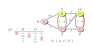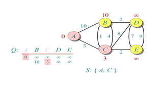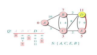 The document provides an overview of routing in network architecture, detailing the roles of routers, including packet forwarding and routing as key functions. It describes the architecture of routers, emphasizing the components like input/output ports, switching fabric, and the routing processor, along with their respective functionalities. Additionally, the document covers routing protocols, distinguishing between dynamic vs. static, and link-state vs. distance vector, and explains algorithms like Dijkstra's and Bellman's Ford for pathfinding.