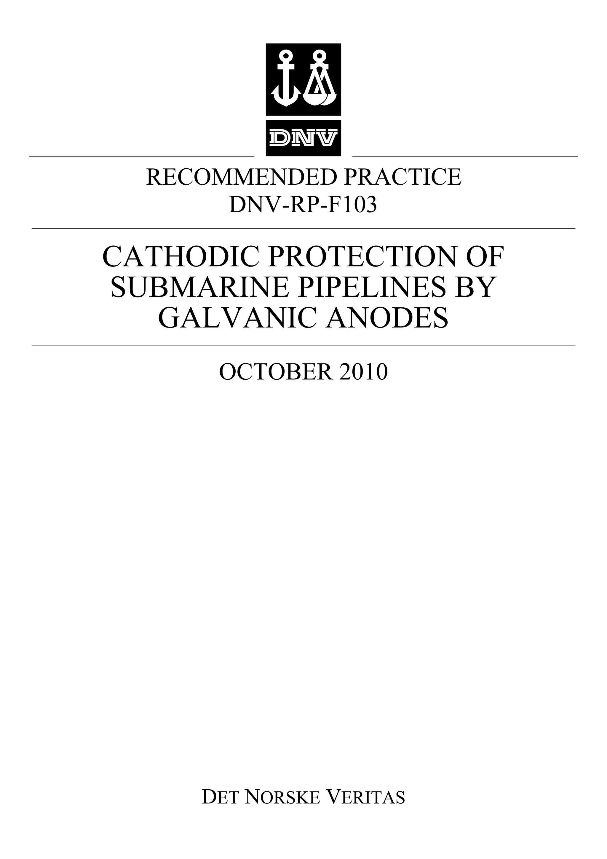 This document provides guidance on the cathodic protection of submarine pipelines by galvanic anodes. It covers topics such as calculating cathodic protection current demand, sizing anodes to meet the demand, anode manufacturing requirements, anode installation procedures, and documentation. The guidance is general but allows for customization to project specifics or regulatory requirements. The objective is to ensure cathodic protection systems are adequately designed and installed to protect submarine pipelines from corrosion.