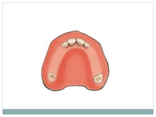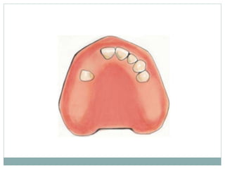 This document discusses removable partial dentures (RPDs) and classifications of partially edentulous arches. It begins by defining prosthodontics and RPDs. Kennedy's classification is then explained in detail, including the four major classes (I, II, III, IV). The classification assesses the location of edentulous spaces in relation to remaining teeth. Applegate later modified Kennedy's classification to include two additional classes (V, VI) based on abutment tooth condition. The document emphasizes that Kennedy's classification is widely accepted and aids in treatment planning for RPDs.