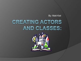 This document provides instructions for creating characters and classes in RPG Maker VX Ace. It outlines 3 steps: 1) Open RPG Maker and go to the database, 2) Create a new character by filling in information like name and class, 3) Create new classes by providing details such as name, experience curves, and skills. It describes how to customize parameter curves that determine how character stats increase with levels by drawing your own curve or selecting presets. The summary encourages applying a newly created custom class to a new character.