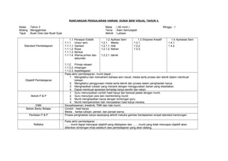Rancangan pengajaran harian mata pelajaran seni visual untuk kelas tahun 3 yang meliputi 8 minggu pembelajaran dengan tema alam semula jadi dan aktiviti seperti melukis, membuat corak, membina model, mengenal kraf tradisional dan lain-lain.