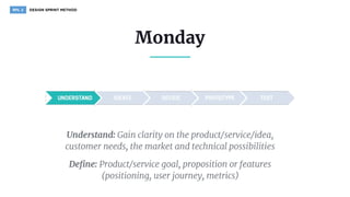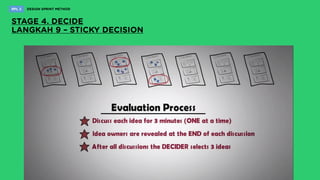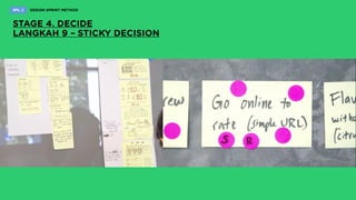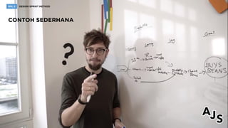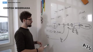 Design sprint adalah metode untuk menyelesaikan masalah dalam lima hari melalui hipotesis, prototipe, dan pengujian langsung dengan pengguna, yang dapat melibatkan beragam keterampilan dari tim lintas fungsi. Sprint master berperan penting sebagai fasilitator, mengatur dinamika kelompok, dan mendokumentasikan kemajuan. Metodologi ini menggabungkan unsur agile dan design thinking, dan telah diperbarui melalui versi 2.0 yang dikembangkan oleh AJ&Smart.