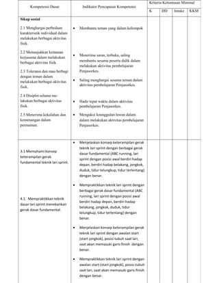 Rencana Pelaksanaan Pembelajaran (RPP) ini membahas tentang pelajaran Pendidikan Jasmani, Olahraga dan Kesehatan untuk siswa kelas VII tentang materi teknik dasar lari sprint. RPP ini menjelaskan kompetensi dasar, indikator pencapaian, alokasi waktu, metode pembelajaran, langkah-langkah pembelajaran, penilaian hasil belajar, dan disetujui oleh guru.