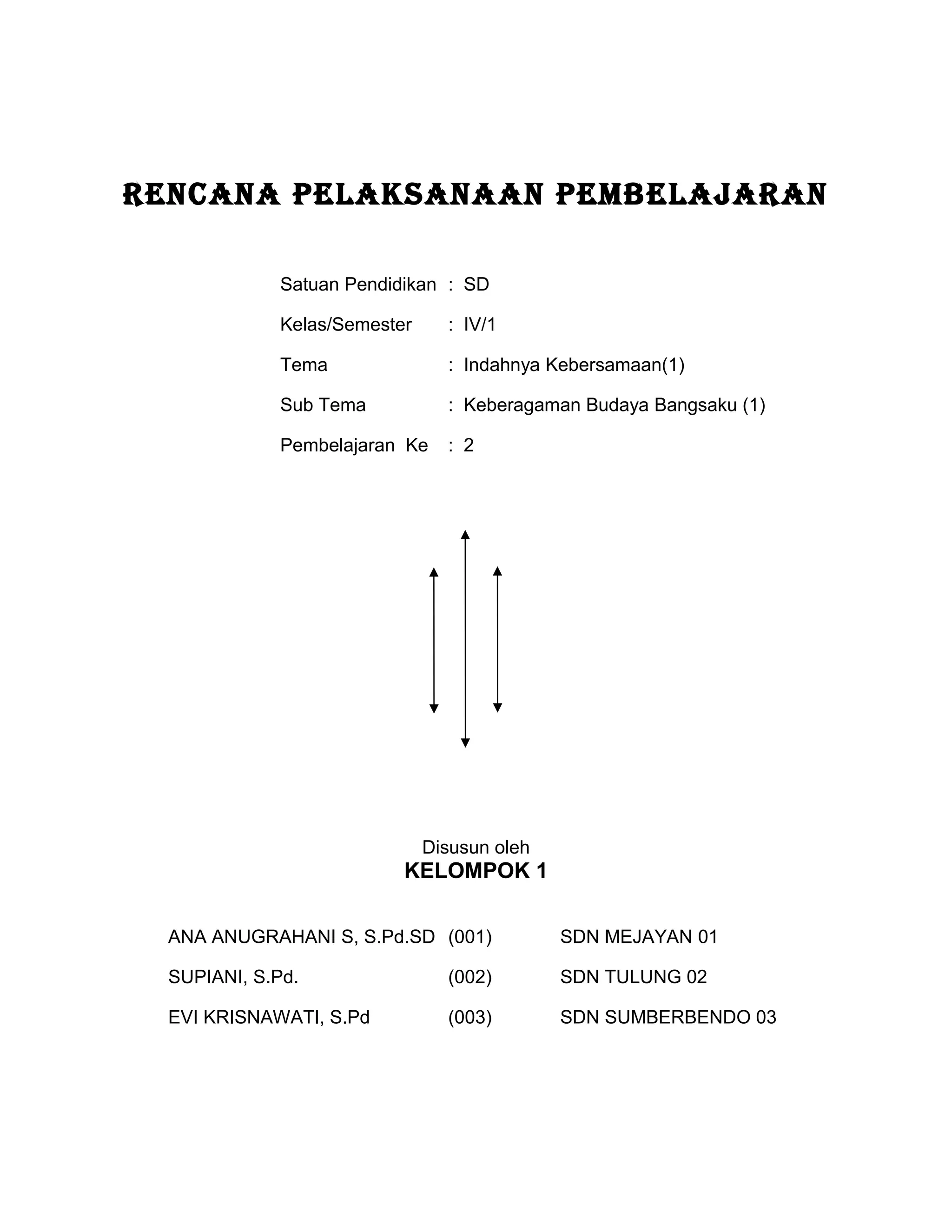 Dokumen ini adalah rencana pelaksanaan pembelajaran untuk siswa SD kelas IV, dengan tema 'Indahnya Kebersamaan' dan subtema 'Keberagaman Budaya Bangsaku'. Pembelajaran mencakup berbagai kompetensi dasar di bidang Bahasa Indonesia, Matematika, dan Seni Budaya dan Prakarya, serta meliputi aktivitas pengamatan, diskusi, dan eksplorasi tari tradisional. Tujuan pembelajaran adalah untuk meningkatkan pemahaman siswa tentang kebudayaan dan berbagai jenis sudut dalam geometri melalui kegiatan yang interaktif.