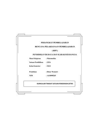 Dokumen ini merupakan rencana pelaksanaan pembelajaran (RPP) untuk mata pelajaran matematika di SMA, khususnya mengenai invers matriks. RPP ini mencakup tujuan pembelajaran, metode pembelajaran, serta langkah-langkah kegiatan yang melibatkan eksplorasi, elaborasi, dan konfirmasi. Penilaian dilakukan melalui tugas kelompok dan individu yang berfokus pada pemahaman konsep invers matriks ordo 2x2.