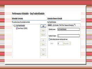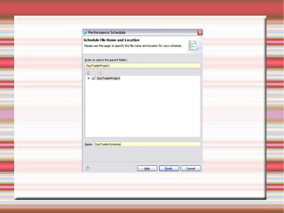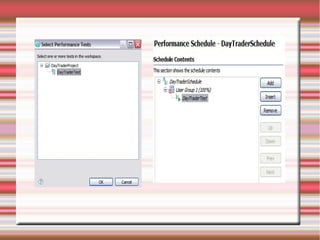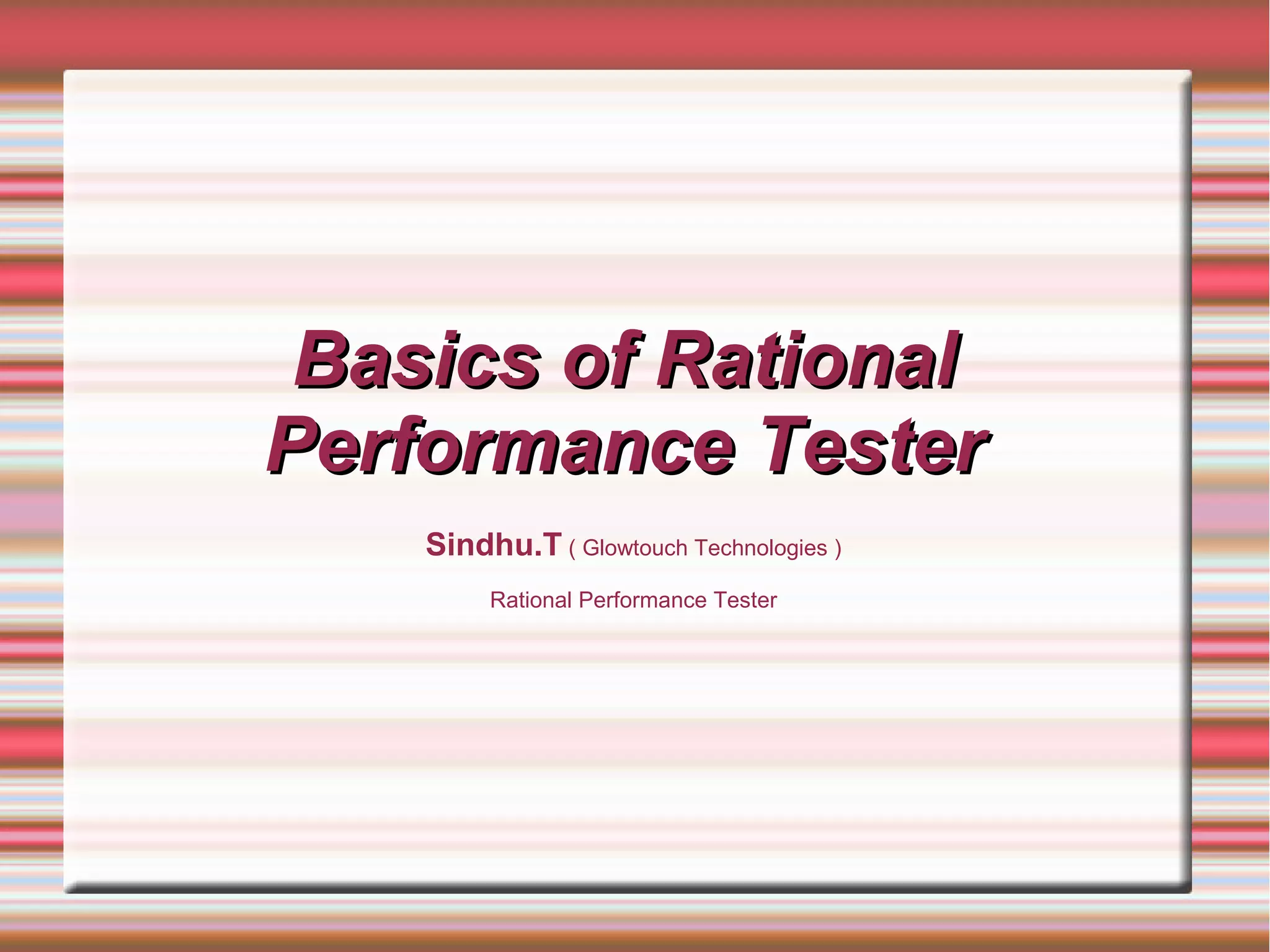 The document outlines the basics of Rational Performance Tester, emphasizing goals such as response time, scalability, and system reliability. It details the testing process, including project setup, scripting, correlation, and creating and using datapools for varied test data. Additionally, it highlights verification points for error detection and how to execute performance scripts effectively.