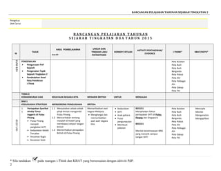 Rancangan Pelajaran Tahunan Sejarah Tingkatan 2 SMK Senai tahun 2015 menyenaraikan topik-topik yang akan diajar sepanjang tahun termasuk pengenalan awal kepada sejarah tingkatan 2, penguasaan British di Nusantara seperti Pulau Pinang, Singapura, Melaka, dan pembentukan Negeri-Negeri Selat. Ia juga merangkumi dasar campur tangan British di Negeri-Negeri Melayu akibat Revolusi Perindustrian dan