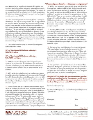 1. The document is an auction consignment agreement between R&R Auction Company (RRAuction) and a consignor to sell consigned items at auction.