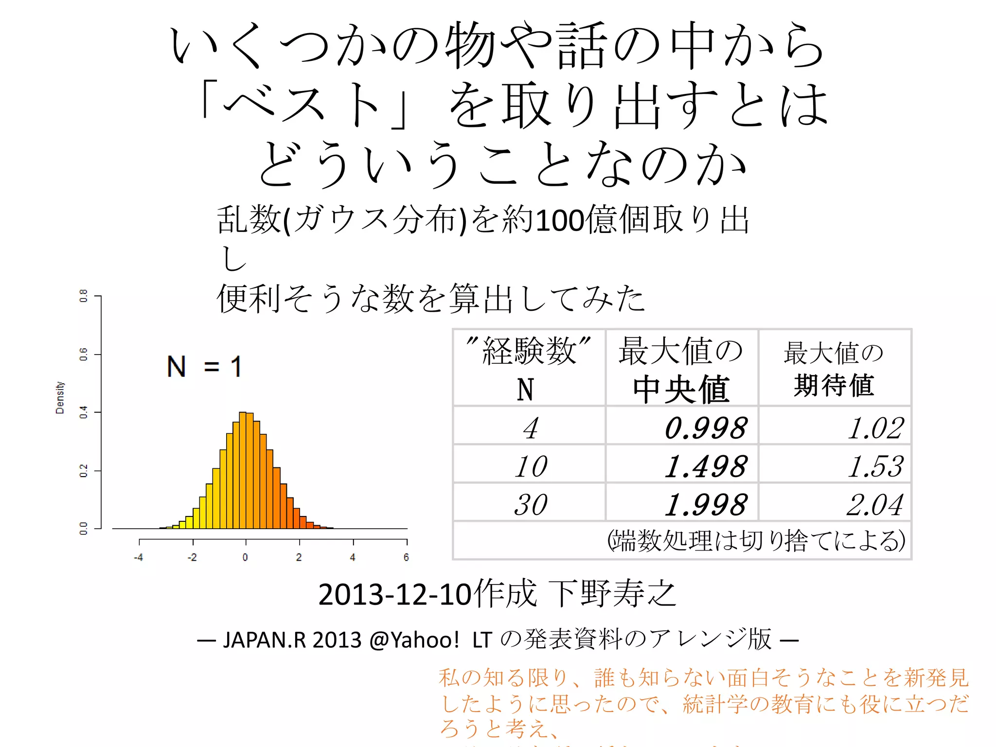 • 「10回の経験を知っている人の話は、+1.5σ 盛られた話だから、1.5σ 差し引い