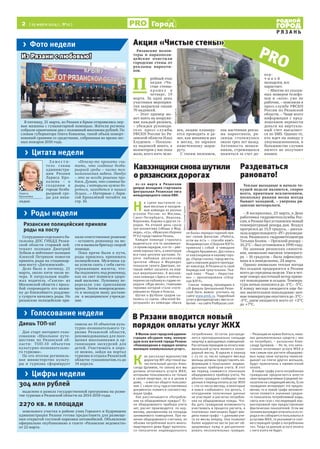 Документ описывает различные события и инициативы в Рязани, включая акцию "Чистые стены" против наркорекламы, помощь полиции при родах и изменения в порядке оплаты ЖКХ. Также упоминается старт интернет-голосования для выбора объектов культурного туризма и предстоящая ярмарка вакансий для пожилых людей. Документ содержит актуальные новостные сводки и сведения о социальной политике региона.