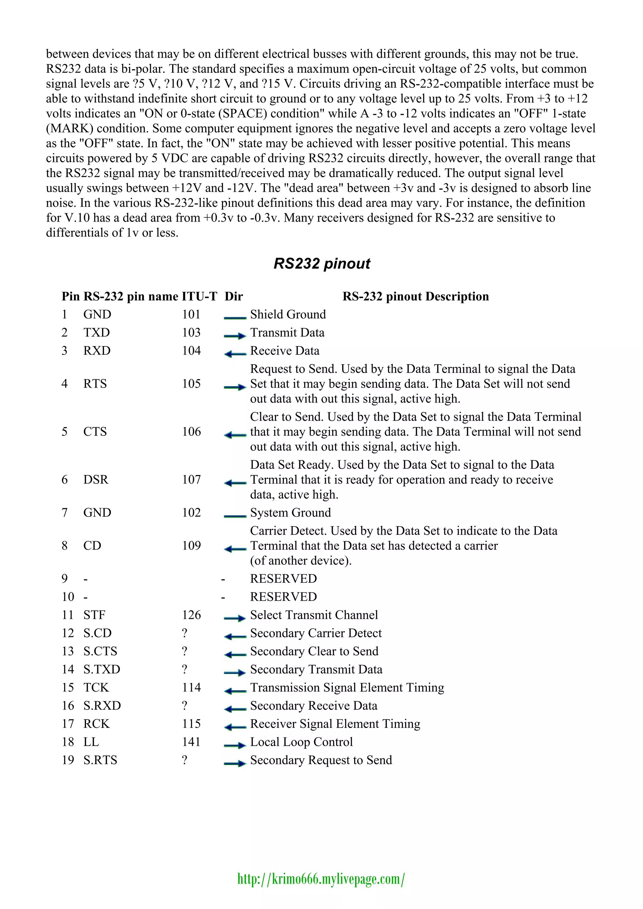 RS-232 is a standard for serial communication interfaces. It defines the electrical characteristics for signals and connectors to allow transmission of data between devices. Key features include single-ended signaling with large voltage swings between +/-3V to +/-15V to represent binary signals. It supports asynchronous transmission of 7-8 bit packets at rates up to 20kbps and defines 25-pin connectors between data terminal equipment and modems.