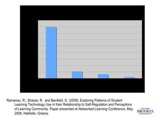 The document discusses several studies related to learners' experiences with e-learning and the use of digital technologies. Key findings include: