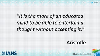 The document discusses the 'CISO Impact Quotient' (CIQ) and outlines seven key factors that influence a Chief Information Security Officer's impact within an organization. These factors include gaining command of facts, involving business leaders in risk ownership, embedding security into processes, and communicating security's value. The document highlights the importance of strategic alignment between information security and business objectives to enhance overall organizational resilience.