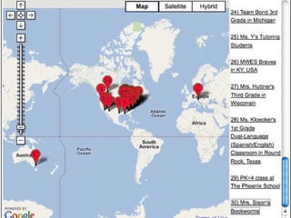 This document provides step-by-step instructions for creating an automatically updating directory map using Google Spreadsheets, Zadling, and embedding the map in a wiki. The process involves creating a spreadsheet with location data, publishing it as a form, using Zadling to generate an interactive map from the spreadsheet, and copying the map code into a wiki page. The map will then update whenever new form responses are submitted.