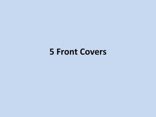 The document provides an analysis of the front covers of several magazines. It summarizes key design elements like the placement of the masthead, main image, plugs, and other conventions. For one magazine, it notes the red theme reflecting the brand's energy and the band members' unusual outfits conforming to the magazine's insane mood. It also discusses design choices like font colors and the representation of gender in the layouts.