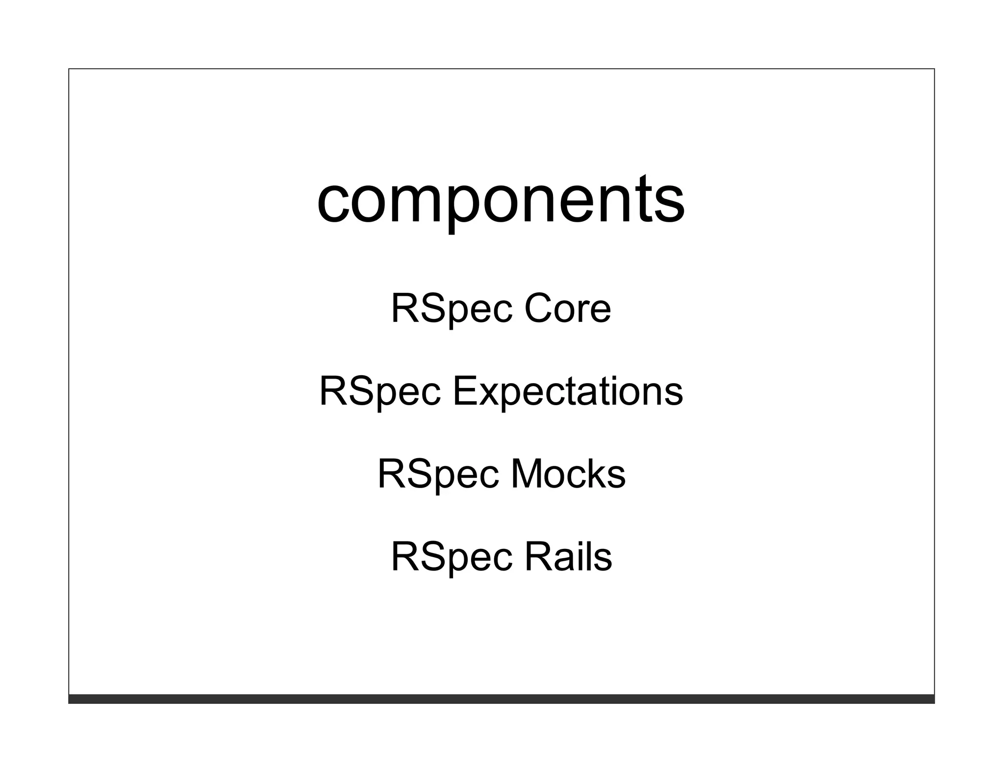 This document provides an overview of RSpec, a testing framework for Ruby. It discusses key components of RSpec like Core, Expectations, and Mocks. It describes how to run RSpec specs with Rake tasks or directly from the command line. It explains matchers like "be" and "have" that are used to make assertions in RSpec examples. It also covers subjects, lets, contexts, class/instance methods, model validations, mocks, and how to test rails models and mailers using RSpec.