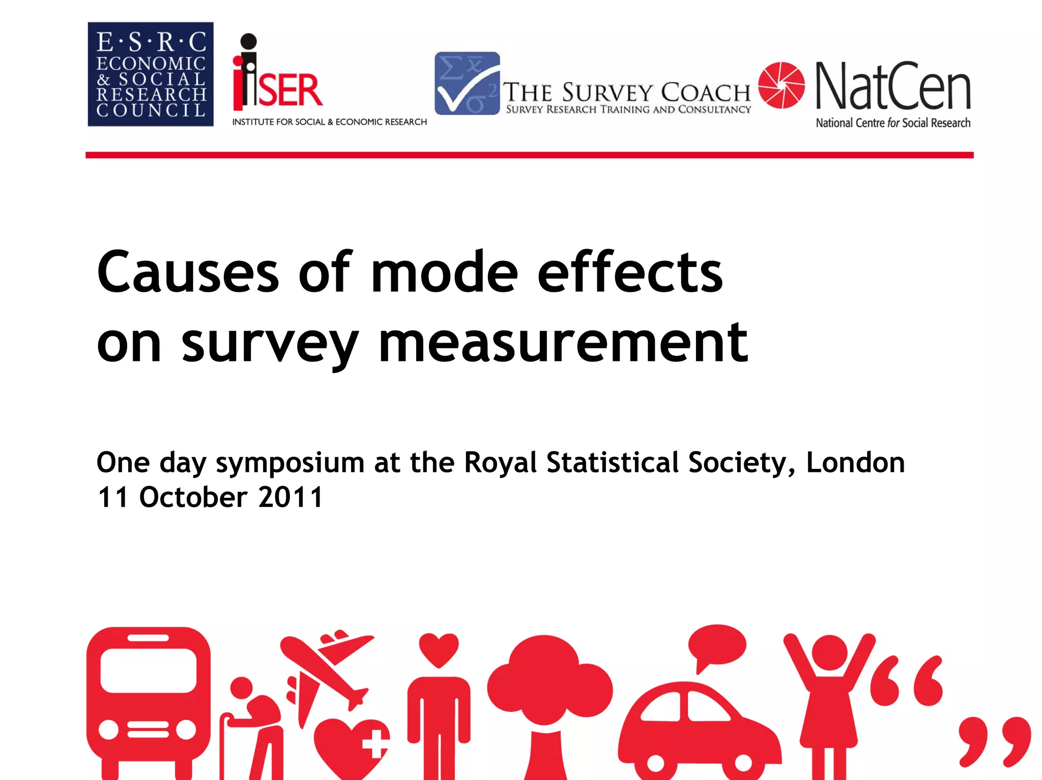 This document provides an overview of a one day symposium on causes of mode effects on survey measurement. The symposium focused on how the mode of data collection can affect survey responses. It explored this topic through several presentations and discussions on how cognitive interviewing, visual/aural stimuli, interviewers, question format optimization, and question design affect comparability of responses across modes. The goal was to provide practical advice on improving portability of survey questions across different modes of data collection like telephone, web, and paper surveys.