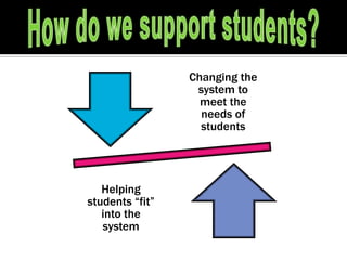 This document discusses Florida's multi-tiered system of supports for students, including three tiers of increasingly intense problem-solving and support involving teachers, parents, school teams, and districts. It also addresses how a structured classroom provides different levels of support for student needs through visual structure, instructional strategies, schedules, addressing behavior and physical layout, communication, social skills training, meaningful independent work, collaboration, and data-based decision making. The document asks what concerns teachers have regarding student learning and whether those concerns are alterable or unalterable factors.