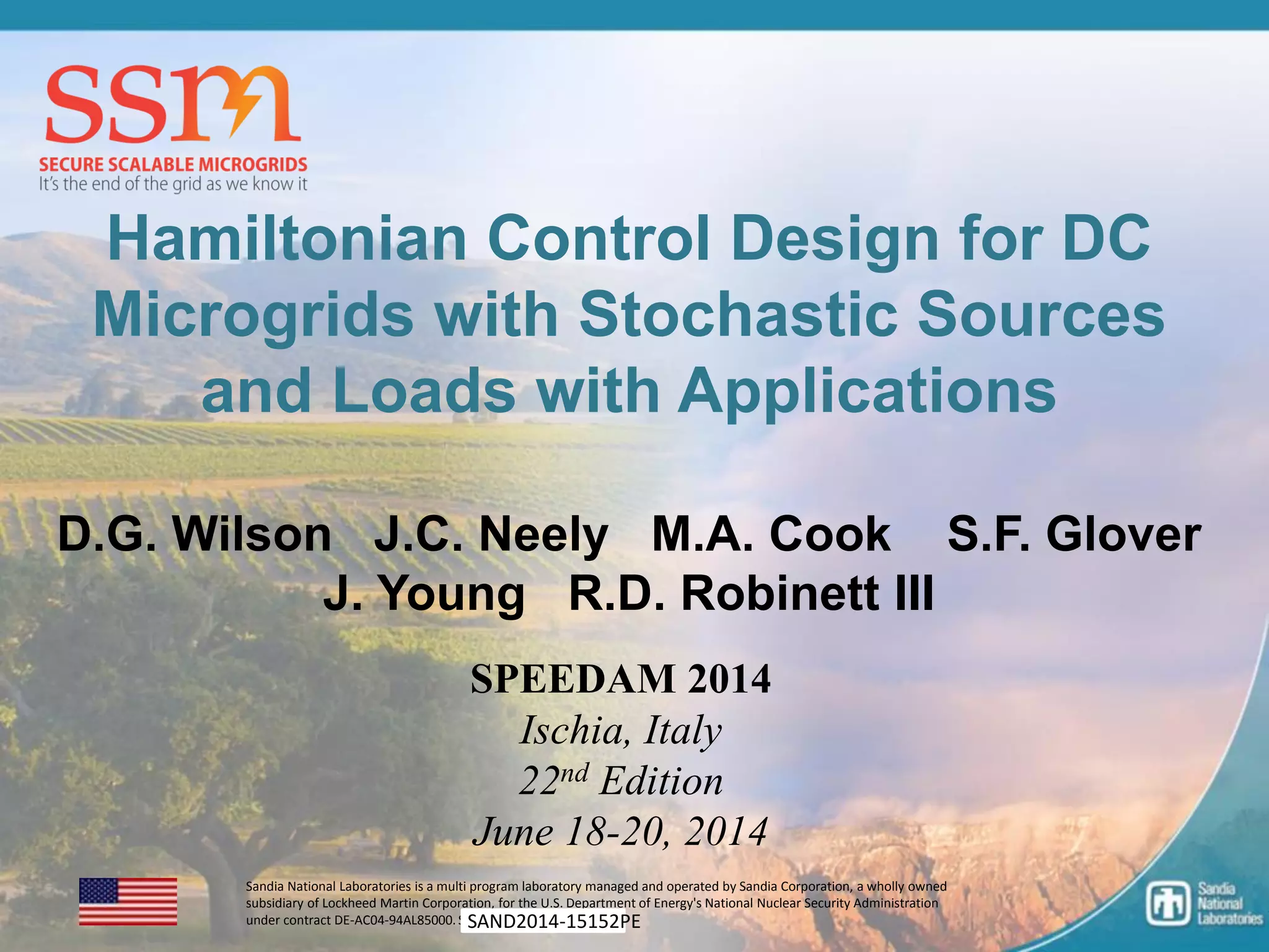 The document summarizes research on designing nonlinear controllers for microgrid systems with stochastic sources and loads. Key points include: