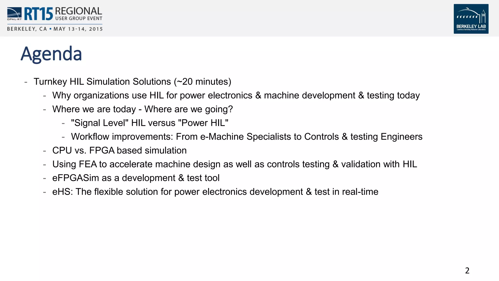 FPGA simulation provides high-fidelity models for hardware-in-the-loop testing of electric machines and power electronics. It allows control algorithms to be tested with highly resolved non-ideal behaviors faster and at lower cost compared to physical testing. The document discusses how eFPGAsim utilizes FPGA technologies to simulate electric drive systems with models exported from finite element analysis, improving collaboration between design and control engineers.