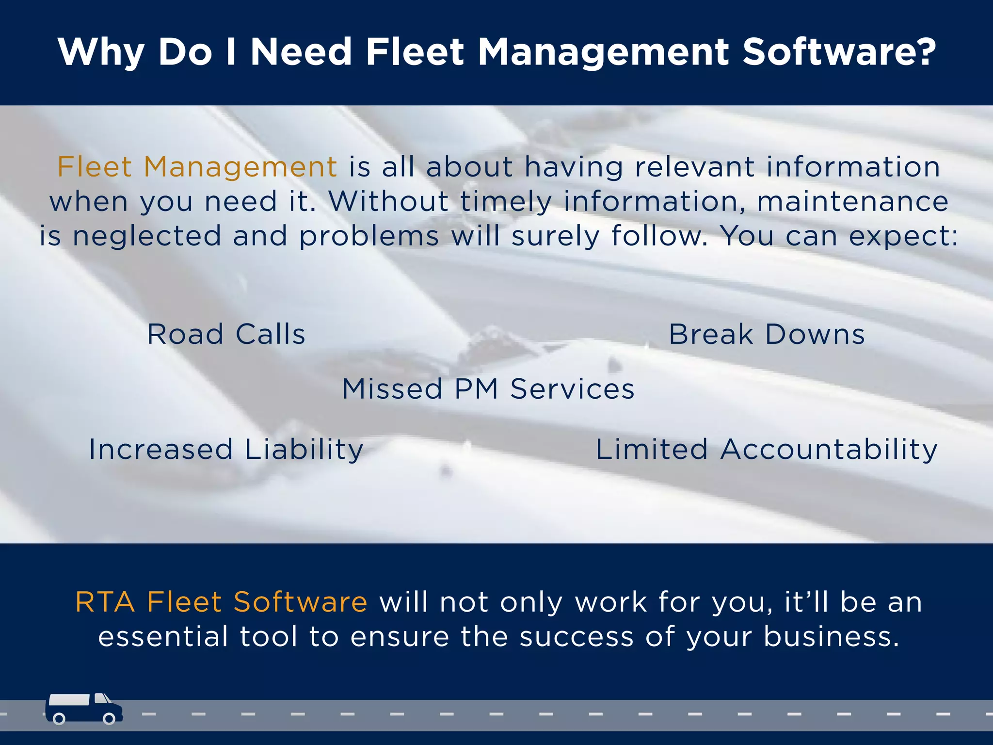 RTA Fleet Management Software provides essential tools for managing vehicle maintenance, ensuring timely information to prevent breakdowns and liability issues. The software features modules for vehicle maintenance tracking, driver reporting, accident documentation, and motorpool rental services, all while offering customizable and user-friendly functionality. Users can access a fully functional demo version with annual updates and tech support to experience the system's capabilities.