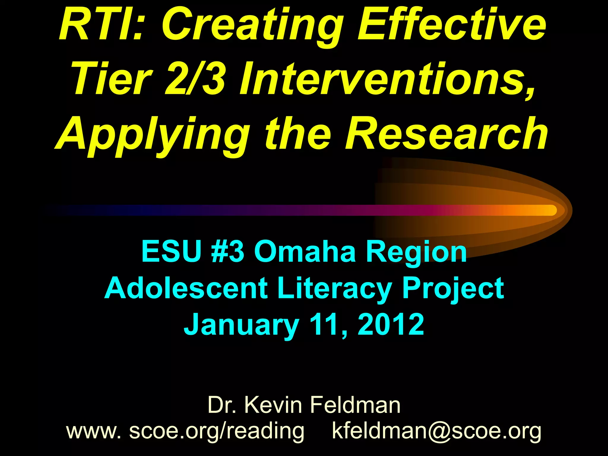 This document discusses Response to Intervention (RtI) and creating effective Tier 2 and 3 literacy interventions for adolescents. It provides validation for RtI approaches, outlines practical strategies and resources for implementation, and discusses information to further refine RtI programs. Key points include organizing interventions in tiers of increasing intensity based on student need, using data to drive decision making, and matching interventions to assessed student needs in domains like word study, fluency, vocabulary, and comprehension. Direct and explicit instruction is emphasized along with intensive small group work for struggling readers.
