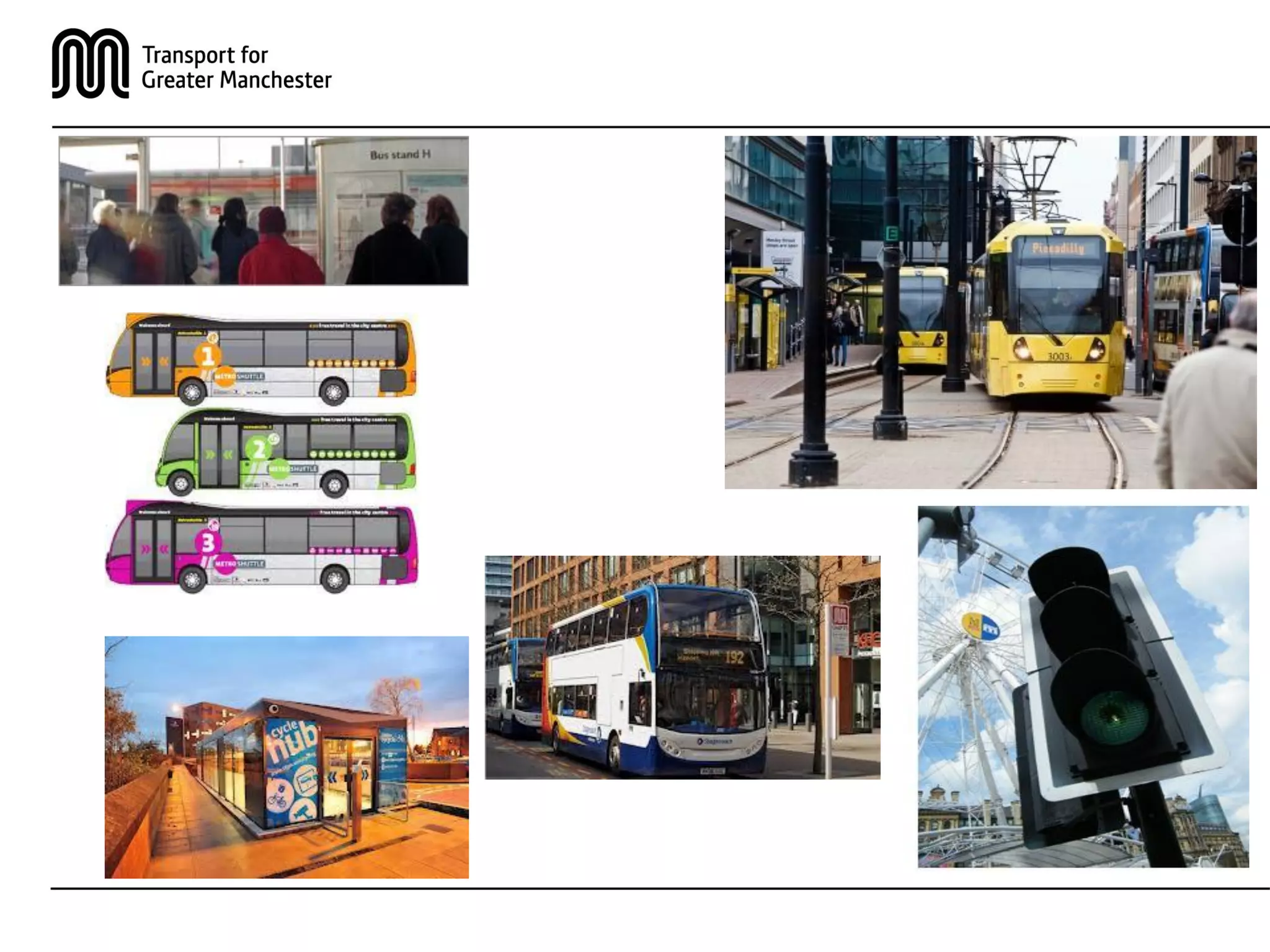 Transport for Greater Manchester (TfGM) plans to implement a new real-time passenger information (RTPI) and traffic management system to improve travel information and network efficiency. The system will provide multi-modal real-time travel updates and journey planning to help customers make more informed travel choices. It will also implement bus priority at traffic signals and network monitoring to improve reliability of bus and road journeys. An open data platform and market engagement were conducted to help design an integrated architectural approach using open standards. Benefits will be monitored through online engagement and journey time data analysis.