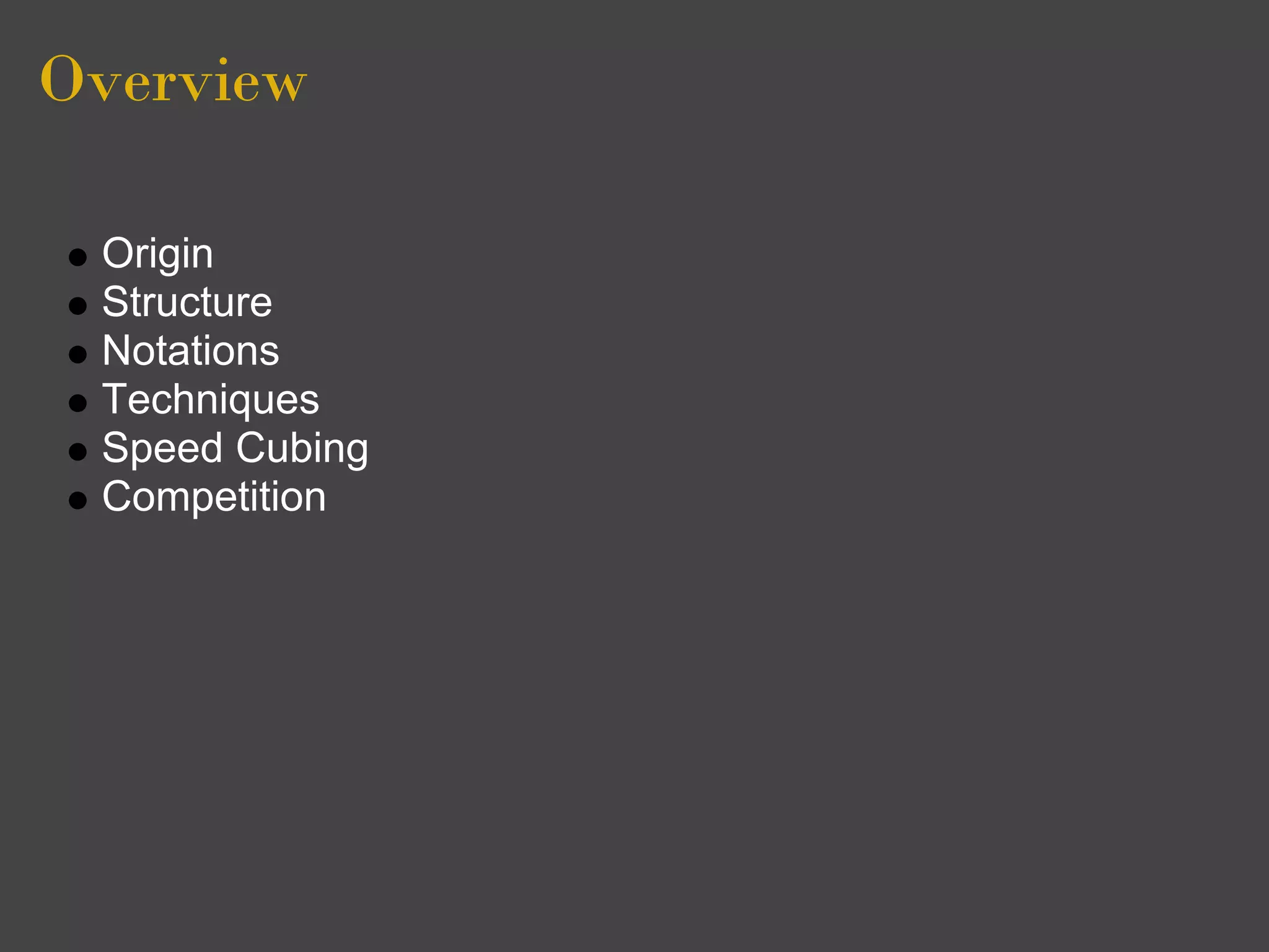 The document discusses Rubik's Cubes, including their origin and structure. It describes common notation and techniques used in solving Rubik's Cubes, such as layer-by-layer and block building methods. It also discusses speed cubing competitions and provides examples of the Fridrich and Lars Petrus solving methods.
