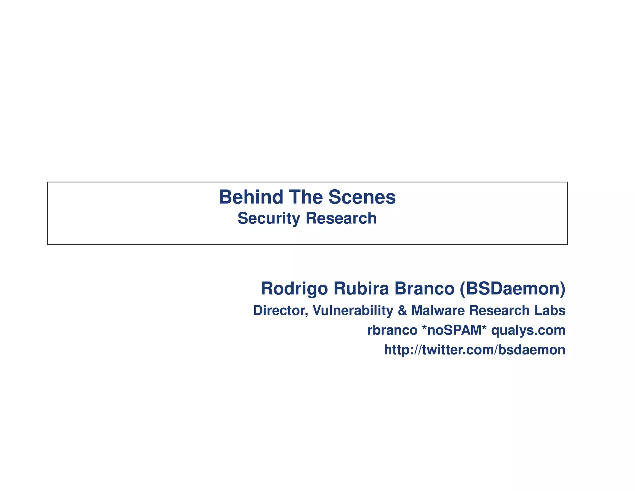 The document discusses the current state of security research, emphasizing challenges faced by exploit writers and the complexities of vulnerability coordination in the industry. It highlights myths about security, the growing market for vulnerabilities, and the necessity of building effective research teams within companies. Additionally, it calls for better understanding and resource allocation to enhance security practices in a rapidly evolving threat landscape.