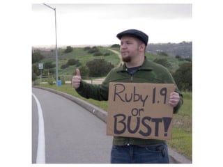 I showed these very simple slides to the SDRuby group while talking about my Ruby19orBust.com project. Check out the presentation at http://sdruby.com/podcast for the real meat.