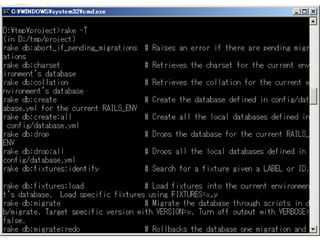 例: rake C の make 、 Java の ant と同じ 分類: Rails フレームワークの rake プラグインの rake 自分の rake - 33.