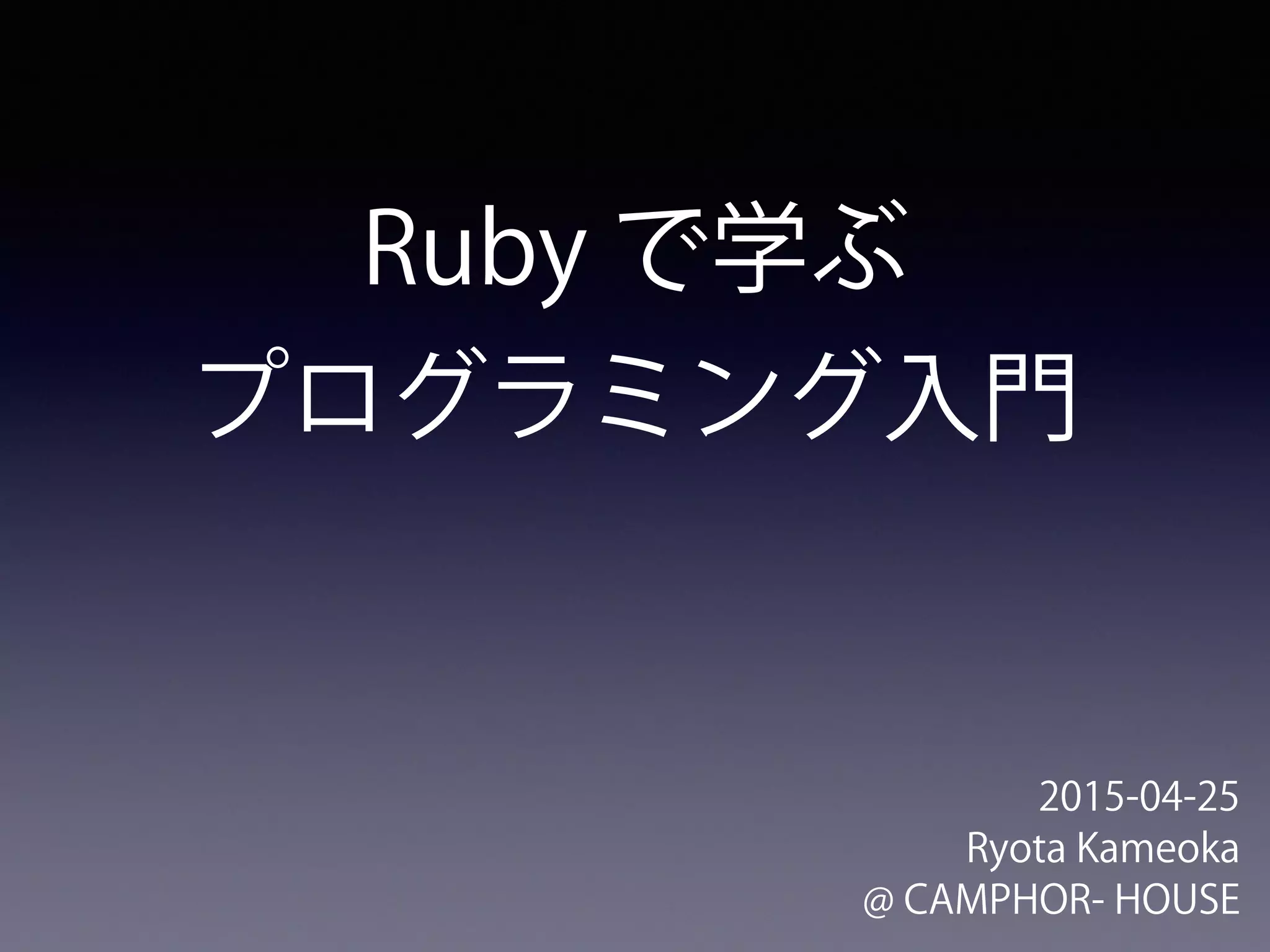 2015年4月25日に CAMPHOR- HOUSE にて行われた「Ruby で学ぶプログラミング入門」の発表スライドです。
