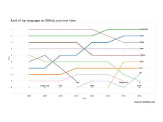 Ruby is a dynamic, object-oriented programming language developed by Yukihiro Matsumoto in the mid-1990s and is known for its expressive grammar and metaprogramming capabilities. It supports multiple programming styles and offers powerful tools for managing packages, documentation, and tasks. The language emphasizes programmer happiness and allows for the creation of domain-specific languages.