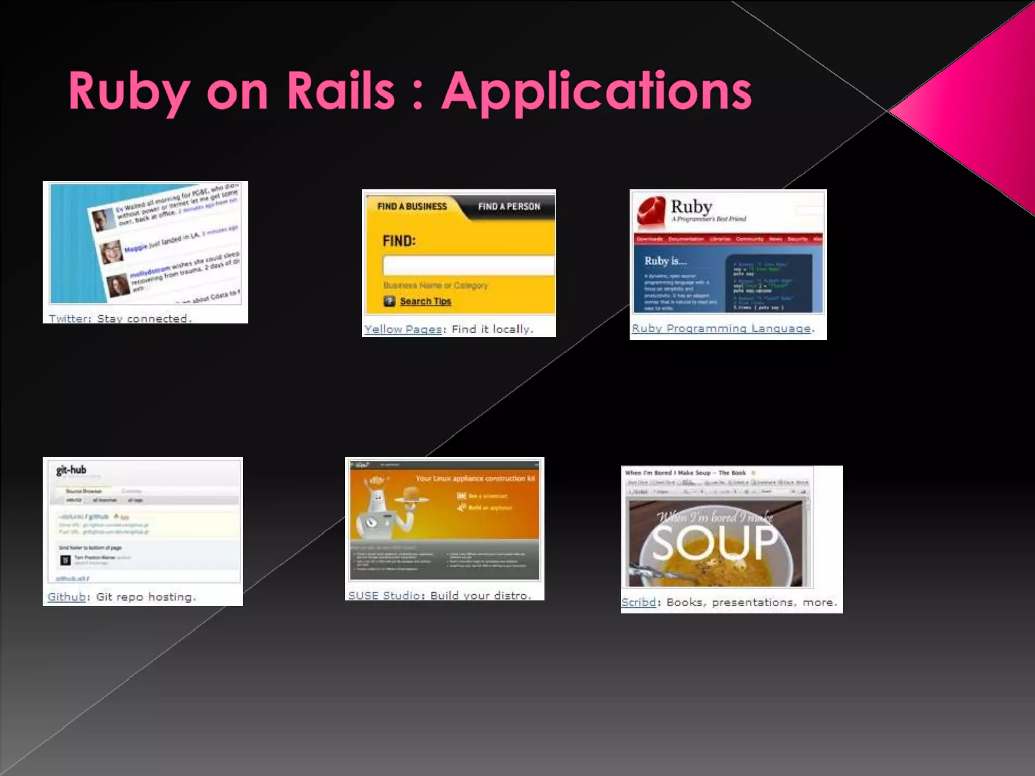 Ruby is a dynamic, reflective, and general-purpose object-oriented programming language designed by Yukihiro Matsumoto, inspired by languages like Perl and Smalltalk. It supports multiple programming paradigms and has led to the development of Ruby on Rails, a web application framework that emphasizes rapid development and agile methodologies. The document further explores key Ruby concepts, the MVC paradigm, and practical tools for database management within Rails applications.