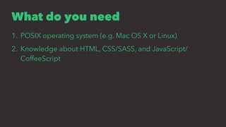 This document provides instructions for setting up a Ruby on Rails development environment on Cloud9 using the suspenders gem. It describes installing Ruby 2.2.3, the suspenders gem, and its dependencies. It then explains how to create a new Rails project with suspenders and replace PostgreSQL with SQLite3. The document concludes by explaining how to launch the Rails server and install the simple_form gem for forms.