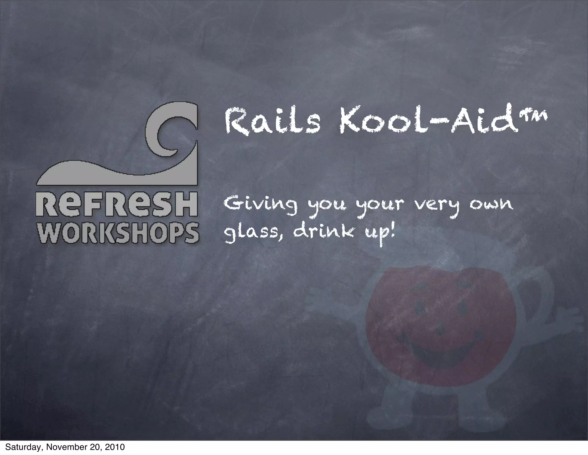 Ruby on Rails (Rails) is a web application framework built on Ruby. It emphasizes conventions over configurations for rapid web application development. Rails encourages best practices like MVC architecture, RESTful design, and conventions like scaffolding to generate the basic structures for models, views, and controllers. The document provides an overview of Rails and steps for creating a basic blog application using Rails, including generating models for posts and comments, basic validations, and authentication.
