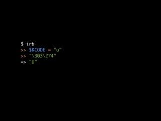 The document discusses various ways to improve Ruby and ActiveRecord syntax through custom methods and techniques like method missing. It provides examples of mapping database queries to method calls for cleaner code, handling multi-database connections, and generating classes on demand through constant missing. The overall goal is to explore how Ruby syntax and patterns can be enhanced for more readable and intuitive code.