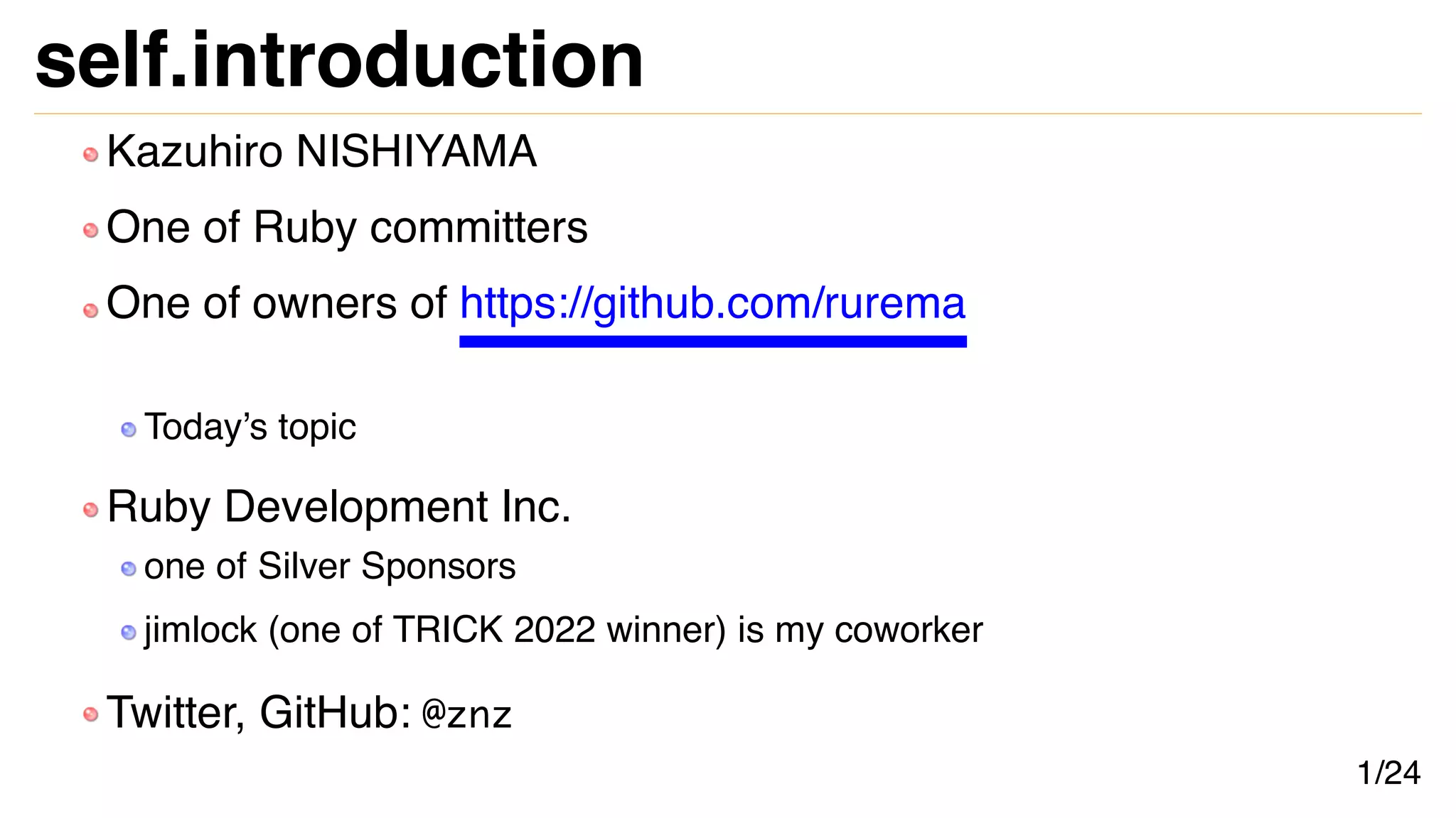 The document discusses the history and future plans of rurema, the Japanese Ruby reference manual project. It began as a wiki to document Ruby 1.6-1.8, and later the rurema project was started to improve the documentation. Current plans include converting the documentation from the original RD syntax to Markdown to improve accessibility and contributions. Other goals include cleaning up unused files, improving usage documentation, and integrating with other Ruby tools like RBS and IRB. Long term plans could include i18n support, but English will likely remain the basis.