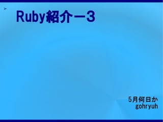 文字コード指定の解説 ➢ #! ruby -K[kcode]を先頭行に打てば文字コー ドが変えられる。 ➢ #は本来コメントだが、先頭行でかつ、!がつい ていたらコマンドと認識する。 文字コードにはいかのがある。 $KCODEの値 文字コード -Ks Shift_JIS -Ke EUC-JP -Ku UTF-8 -Kn ASCII 今回は文字コードをShift_JISにしました。 ちなみにコマプロ上で実行時に ruby -K[Kcode] 実行ファイル名.rbでもできる。