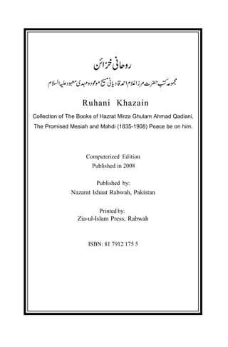 Ruhani Khaza’in Collection of books of Hazrat Mirza Ghulam Ahmed Qadian, 1835-1908, The Promised Messiah and Mahdi, peace be upon him Vol 23