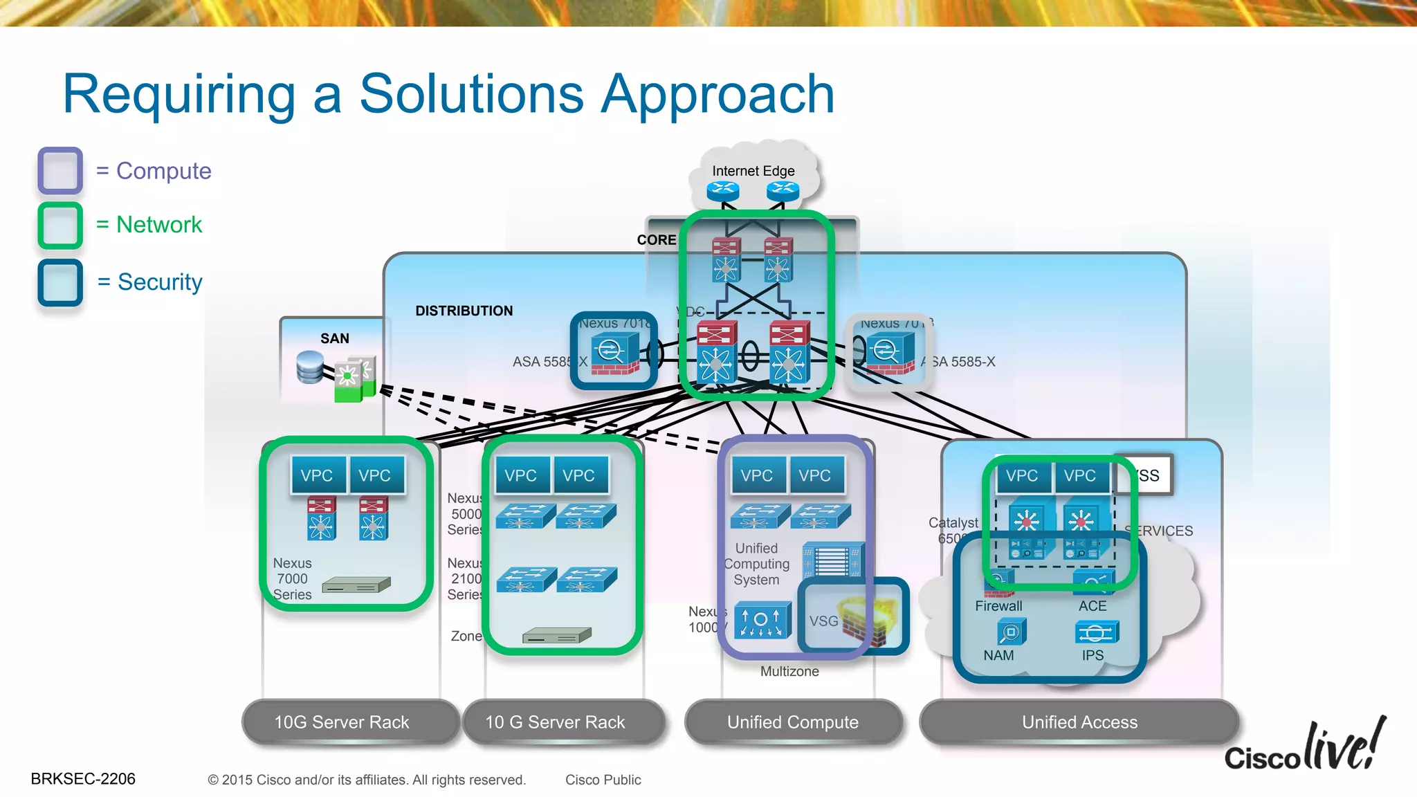 The document discusses security and virtualization in the data center. It covers virtual network security services like the Nexus 1000V virtual switch and Virtual Security Gateway (VSG) which provide network segmentation, security policies, and firewall inspection for virtual machines. It also discusses the virtualized ASA (ASAv) firewall which provides firewall capabilities as a virtual appliance. The document emphasizes maintaining security controls as the data center architecture evolves to be more virtualized.