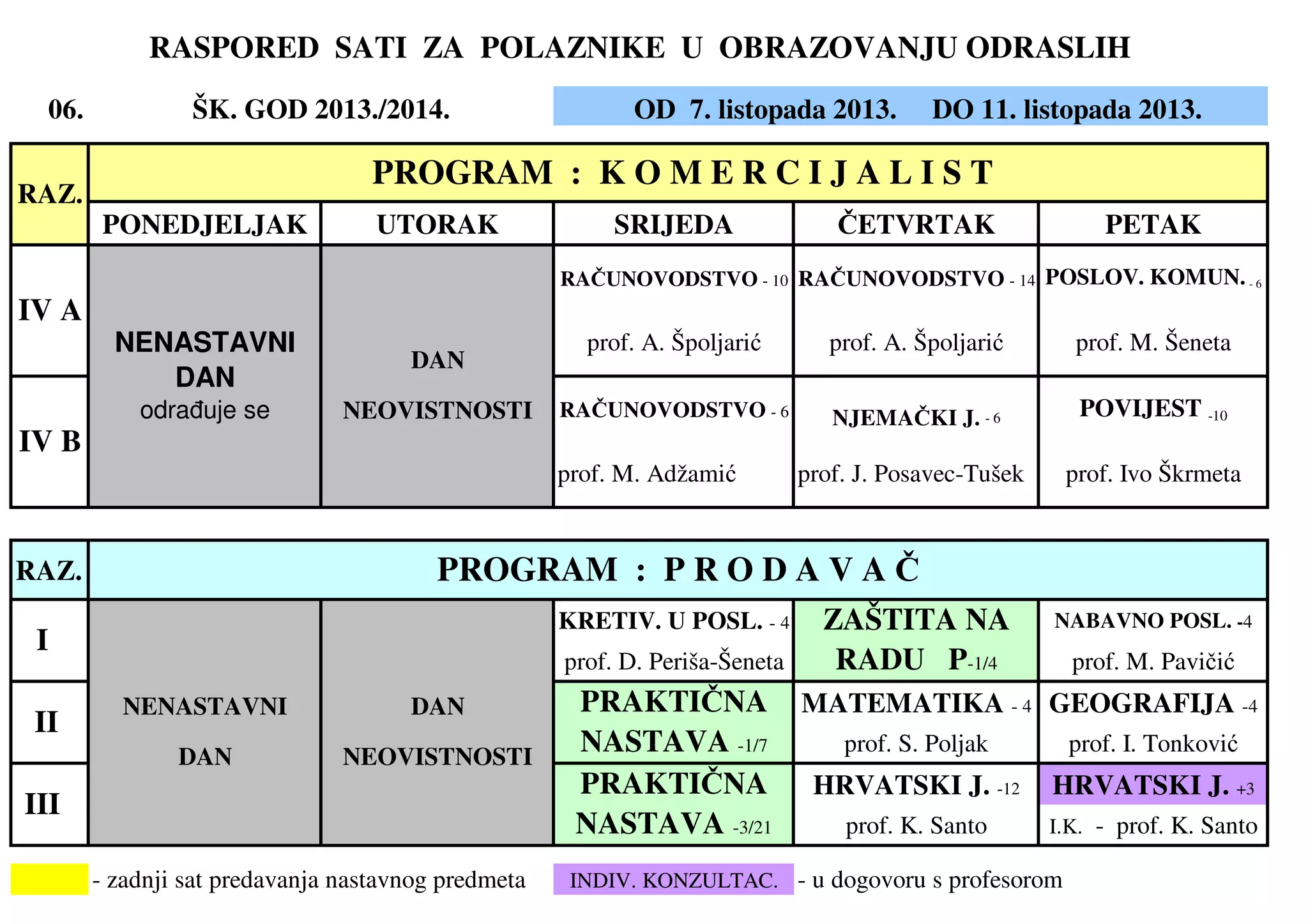 ŠK. GOD 2013./2014. OD 7. listopada 2013. DO 11. listopada 2013.