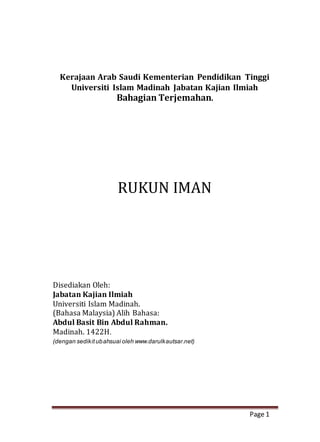 Beriman kepada Allah melibatkan tiga unsur utama: (1) meyakini keesaan Allah sebagai pencipta dan penguasa alam semesta, (2) menyembah Allah dengan tidak menyekutukan-Nya dengan apa pun, dan (3) melaksanakan ibadah hanya kepada Allah. Iman ini bertambah dengan ketaatan dan berkurang dengan maksiat.