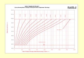 The document discusses key aspects of reservoir operation, including terminology such as full reservoir level (FRL), maximum water level (MWL), minimum drawdown level (MDDL), and various types of storage. It explains the purpose and significance of rule levels and curves in managing water flow and storage during monsoon seasons, as well as methods for calculating these levels based on historical inflow data and planned demands. Additionally, it outlines the procedures for optimizing reservoir operation to prevent flooding while maximizing water supply for agricultural and power generation needs.