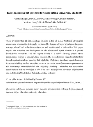 This paper discusses the development of two rule-based expert systems designed to assist university students at a private institution: one for course advising and the other for scholarship recommendations. The study highlights the need for such systems to alleviate the managerial burden on academic staff and to simplify the process of course selection and scholarship eligibility for students. The systems were implemented using Oracle Policy Automation (OPA) software, enabling effective decision-making through automated expertise and user-friendly interaction.