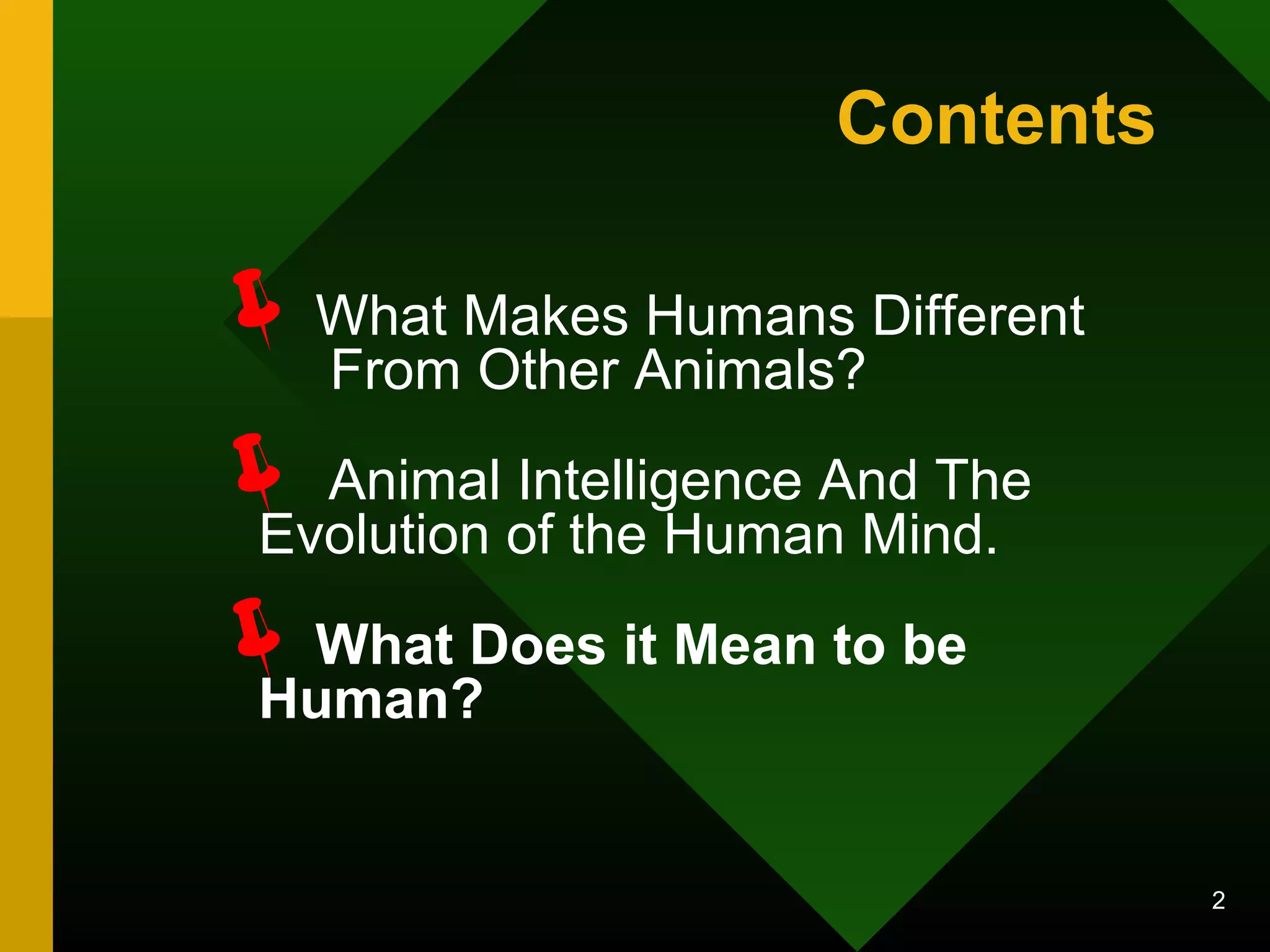 The document discusses what makes humans unique compared to other animals, emphasizing language, reasoning, and the ability to pass down knowledge as key distinguishing features. It highlights various human traits such as upright posture, extraordinary brains, and the use of tools that contribute to our advanced intelligence. The text also explores the evolution of human characteristics, including social behavior and the control of fire, which have significantly influenced human development.