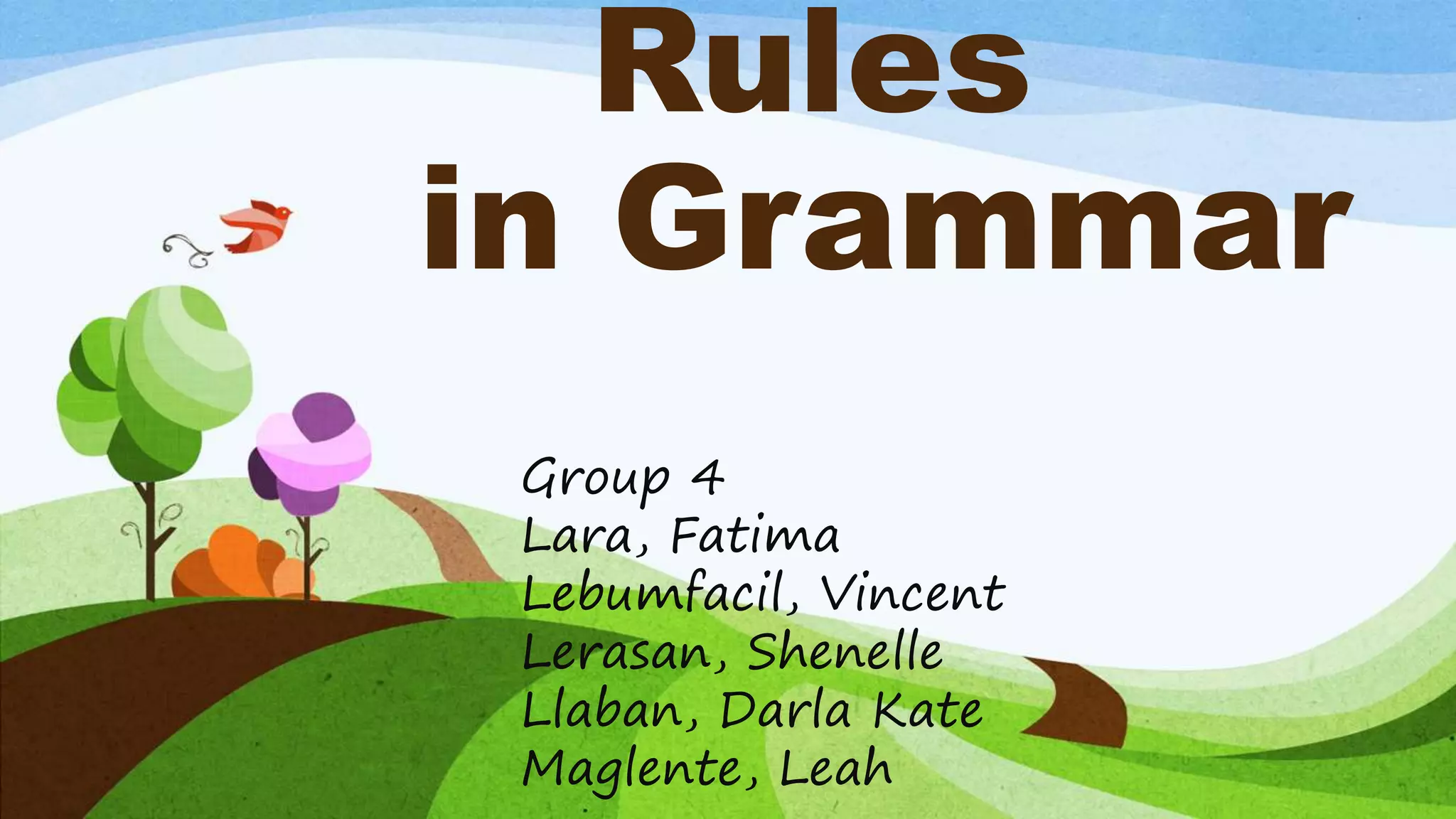 The document discusses English grammar rules. It begins by defining grammar as the set of rules that describe the structure of the English language. Several types of nouns are then examined, including plural-only nouns which do not have a singular form (e.g. pants, scissors). Foreign plurals like phenomena and criteria are also discussed, noting they often follow the pluralization rules of their origin language. The document provides examples of applying various grammar rules regarding nouns.