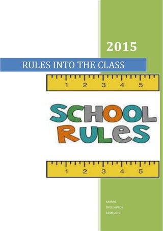 Rules are instructions that help improve behavior. The document outlines important classroom rules such as arriving on time, bringing required materials, studying hard, wearing the uniform correctly, completing homework, speaking up in class, and raising your hand to speak. Negative rules include not crying out, speaking in Spanish, running, playing, or cheating in class. The rules are meant to create a positive learning environment.